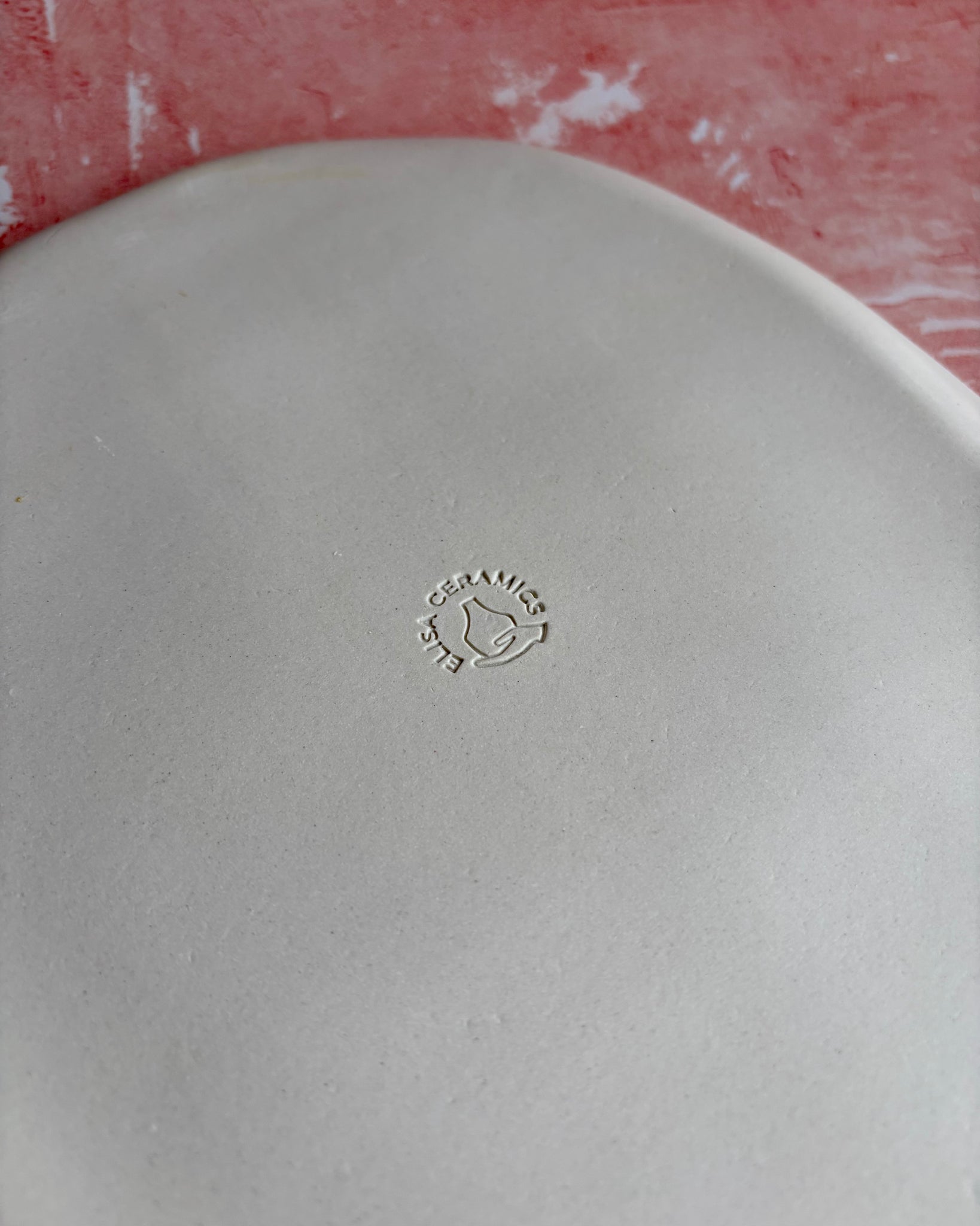 Piatto in ceramica realizzato a mano. Cotto a 1200 gradi centigradi.